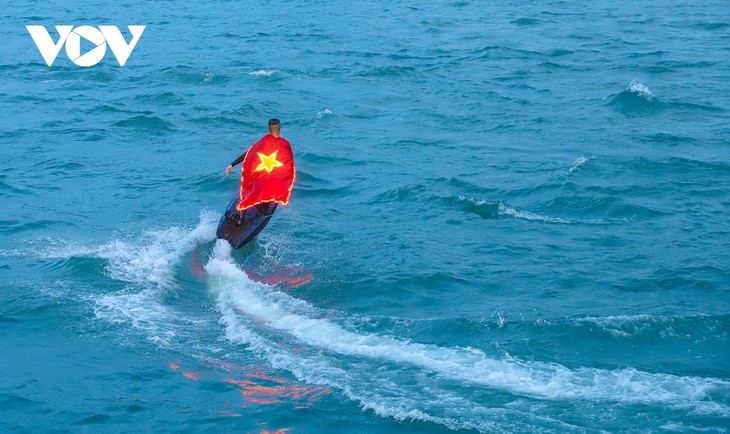 Warna bendera nasional yang merah semakin menonjol di tengah-tengah warna biru langit dan laut serta pulau batu Ha Long, menciptakan citra yang indah dalam rangka peringatan HUT ke-79 Revolusi Agustus (19 Agustus) dan Hari Nasional Republik Sosialis Vietnam (2 September).