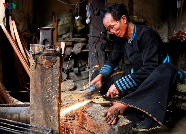 Seorang laki-laki dengan kerajinan tukang besi tradisional