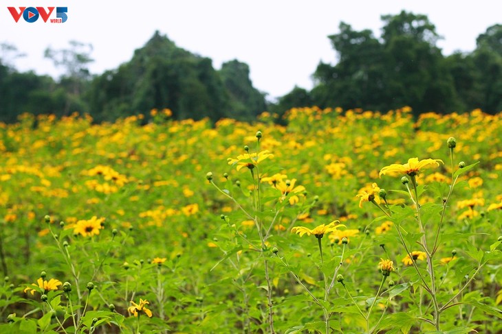Banyak wisatawan memilih Ba Vi sebagai tempat wisata setiap musim bunga kipait yang bermekaran.