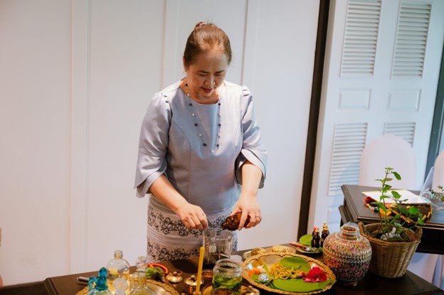Banyak penelitian menunjukkan bahwa bahan aromatik seperti gaharu, minyak cendana, minyak aromatik dan minyak perawatan kulit pertama kali diimpor ke Thailand oleh para Brahmana pada era Sukhothai di Thailand (sekitar tahun 1238 setelah Masehi). Ibu Thiwaporn Sektrakul berbagi: