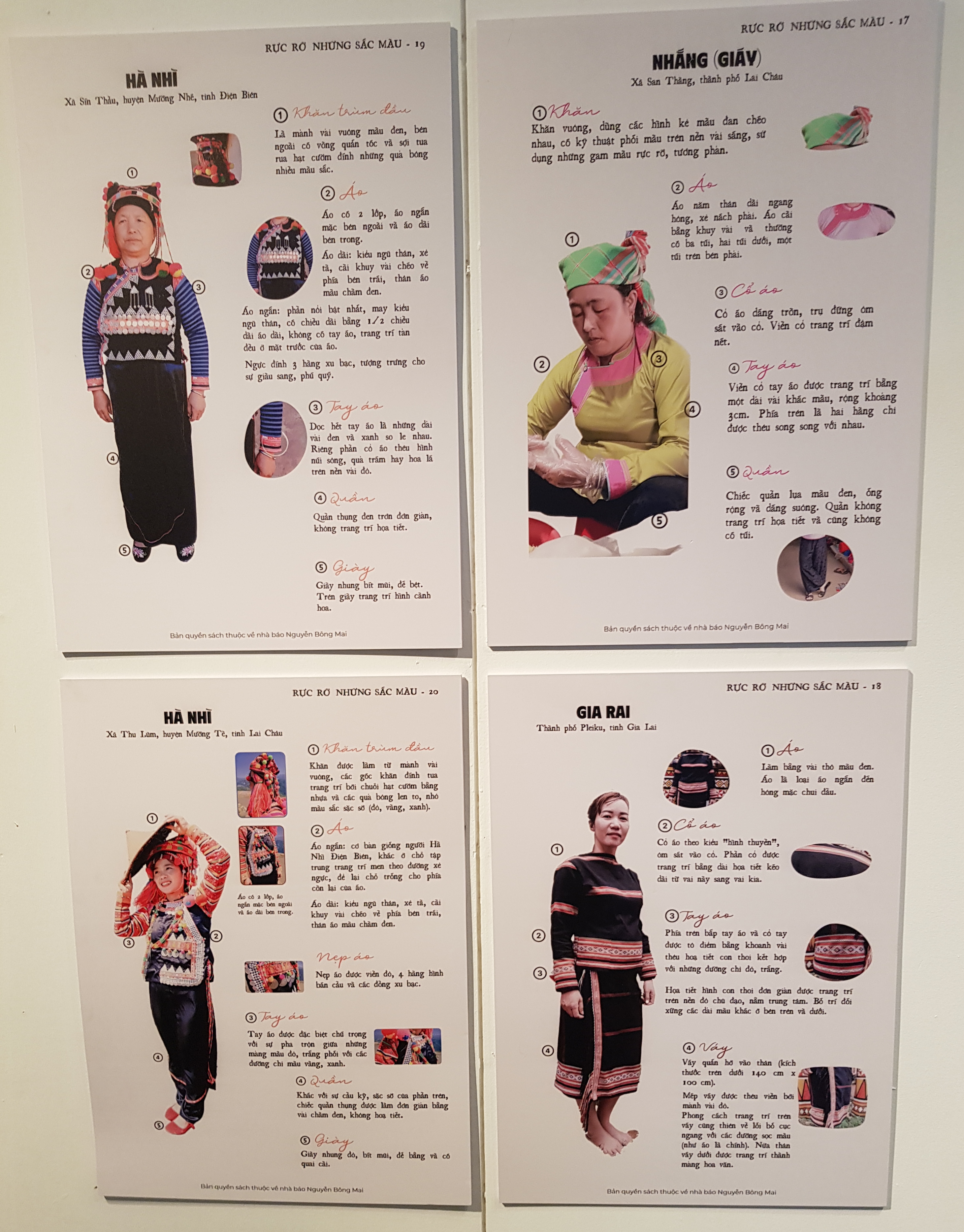 Setelah perjalanan 99 hari melintasi Vietnam, jurnalis, sutradara Nguyen Bong Mai menyelenggarakan pameran "Berani Menjalani Kehidupan yang Cemerlang” tersebut. Pameran ini diselenggarakan dengan disponsori oleh Organisasi Pendidikan, Keilmuan dan Kebudayaan Perserikatan Bangsa-Bangsa (UNESCO) di Vietnam mulai 18/2 hingga 26 Februari di Museum Perempuan Vietnam di Kota Hanoi. Pameran tersebut bagaikan kisah tentang catatan harian perjalanan jurnalis, sutradara Nguyen Bong Mai, dan sekaligus memperkenalkan 55 busana dari 35 di antara 54 etnis di Vietnam. Pameran tersebut juga memperkenalkan sejumlah artikel oleh jurnalis, sutradara Nguyen Bong Mai tentang kebudayaan berbagai etnis dan juga mengungkapkan perasaan selama 99 hari perjalanan melintasi Vietnam. Nguyen Bong Mai juga menghadiahkan 30 foto ke Museum Perempuan Vietnam yang diambilnya selama perjalanan. Minh Anh, salah satu relawan perempuan dari pameran tersebut, mengatakan: