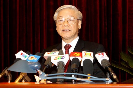 Sekjen KS PKV Nguyen Phu Trong berbicara di depan penutupan Sidang Pleno ke-6