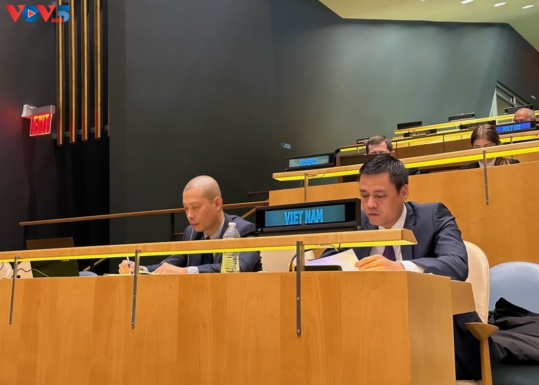 Wakil Tetap Vietnam untuk PBB, Dubes Dang Hoang Giang berbicara pada sidang tersebut (Foto: VOV Washington) |