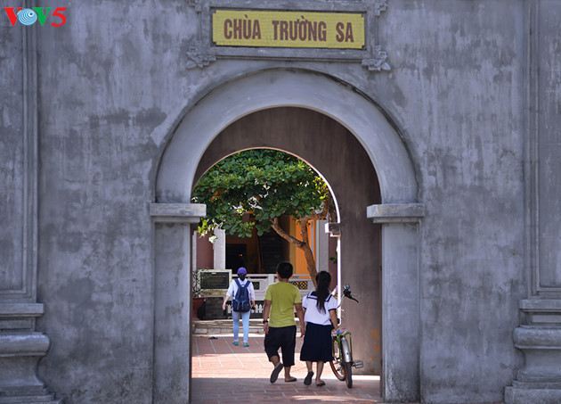 Para utusan ketika mengunjungi Truong Sa, sering datang ke pagoda untuk minta batu kecil dengan cap pagoda sebagai benda kenang-kenangan |
