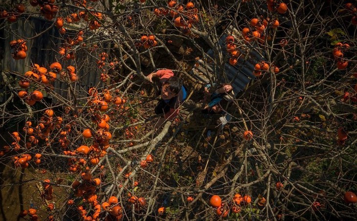 Kebun-kebun kesemek dengan ruangnya puitis telah membantu wisatawan bisa mendapatkan foto-foto unik . Foto: Thanh Binh/tcdulichtphcm.vn