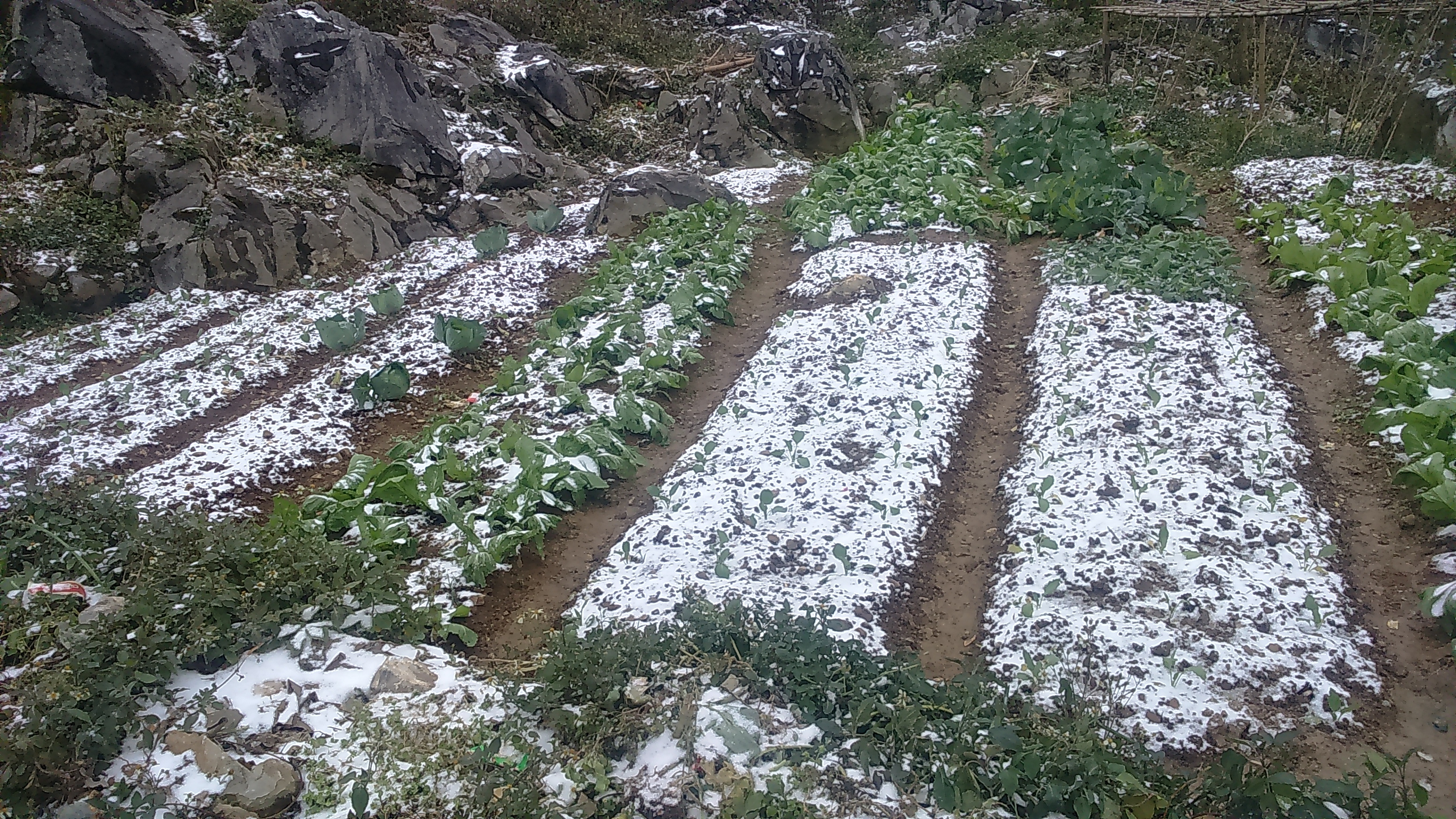 Salju menimbulkan kerugian berat terhadap palawija para warga.
