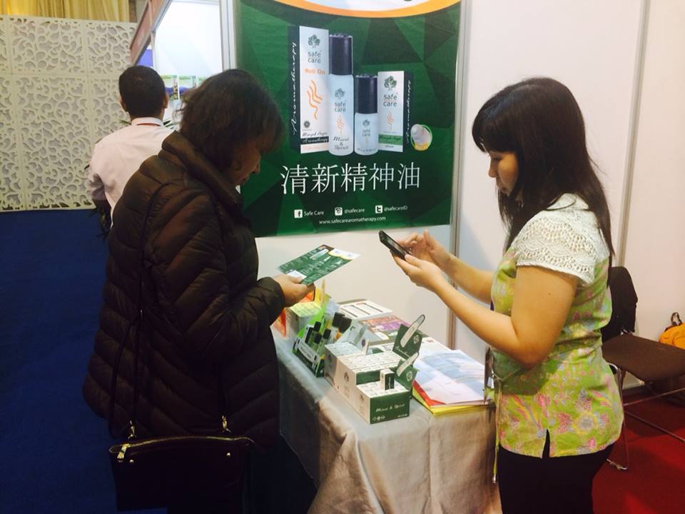 Bapak Sadikin mengantar tamu mengunjungi gerai-gerai barang Indonesia