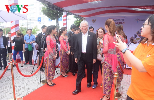 Yang menghadiri acara pembukaan Pekan raya ini ada (dari kanan) :Duta Besar Republik Indonesia, Ibnu Hadi, Wakil Menteri Luar Negeri Indonesia, A.M. Fachir, Menteri Perdagangan Indonesia, Enggartiasto Lukita, Wakil Ketua Komite Rakyat Kota Da Nang, Tran Thanh Mien danKonsul Jenderal RI di Kota Ho Chi Minh, Jane Anes. |