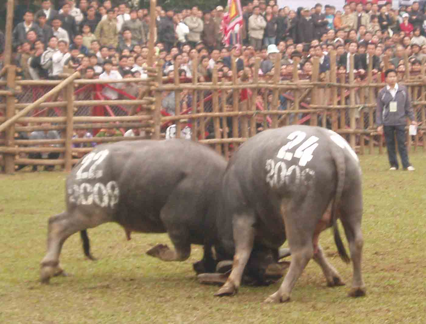 Selanjutnya, kami akan berbincang –bincang dengan saudara Rafael. Saudara yang budiman! kami sangat gembira karena telah menerima umpan balik saudara setelah melihat reportase foto tentang pesta adu kerbau di kecamatan Nghi Thai, kabupaten Nghi Loc, provinsi Nghe An. Dalam umpan balik ini, saudara bertanya: “Kira-kira ada tidak jual kerbau aduannya yang dari Vietnam? Kalau ada tolong di info kontak personnya”. Saudara yang budiman! Adu kerbau adalah satu adat yang sudah ada sejak lama di Vietnam. Sekarang, pesta adu kerbau diselenggarakan di banyak provinsi dan kota di Vietnam seperti Nghe An, Vinh Phuc, Tuyen Quang, Phu Tho, Hai Phong. Setiap pesta adu kerbau banyak menyerap kedatangan wisatawan. Satu hari sebelum berlangsung, setiap kerbau dibawa ke Balai Desa untuk memuja Dewa. Untuk memilih seekor kerbau aduan, banyak orang yang harus pergi ke banyak daerah di seluruh negeri untuk memilih kerbau yang diinginkan. Nguyen Hung Lai, seorang pemilik kerbau aduan yang berpartisipasi pada pesta adu kerbau di kabupaten Do Son memberitahukan bahwa dia harus datang ke banyak tempat untuk bisa membeli seokor kerbau aduan yang harganya kira-kira VND 100 juta (sama dengan kira-kira Rupiah 50 juta). Dia memberitahukan: “Orang yang memiliki kerbau aduan harus memilih kerbau yang matanya menonjol, mempunyai banyak pusaran di bahu, tanduknya besar, kuat dan lebar, kaki depan harus lebih rendah supaya kerbau bisa menundukkan kepala sehingga bisa menyundang lebih kuat”