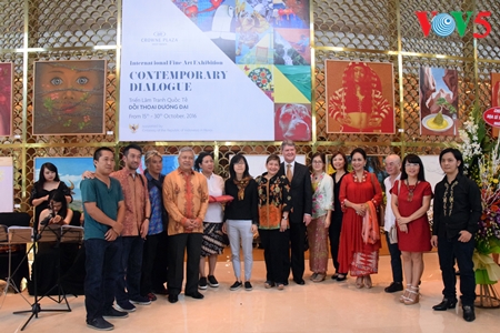 (VOVworld) – Pameran internasional dengan tema: “Dialog Kontemporer” dibuka pada Sabtu pagi (15/10), di kota Hanoi. Pameran ini memajang lebih dari 40 karya seni ciptaan 12 pelukis asal Vietnam dan Indonesia. Menurut pelukis Tao Huong, anggota Panitia Penyelenggara, pameran ini memacu penciptaan-penciptaan yang bersifat isi hati dan dialog-dialog terbuka antara para seniman dua negara dan dengan para pengunjung.