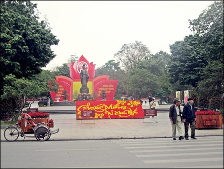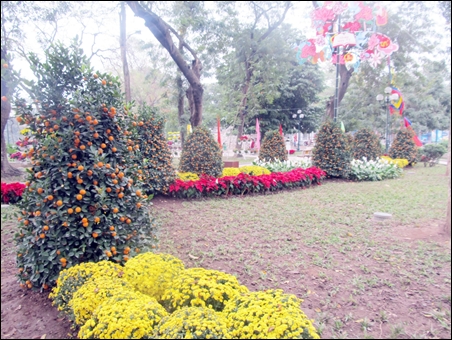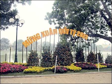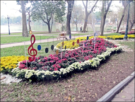 | Di sekitar danau Hoan Kiem, sentral ibukota Hanoi dinanam banyak bunga |