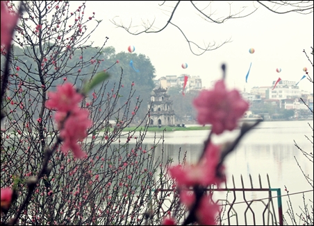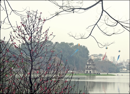 | Bunga Mei ditanam di tepian danau Hoan Kiem |
