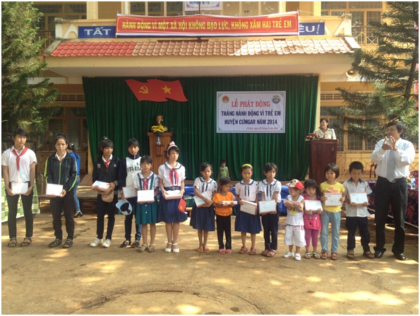 Memberikan bingkisan kepada pelajar miskin di provinsi Dac Lac