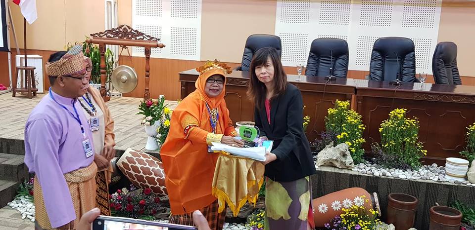 Ibu Sophia Saat, Kepala Panitia TKPR 5 menyampaikan simbolik pertemuan kepada tamu |