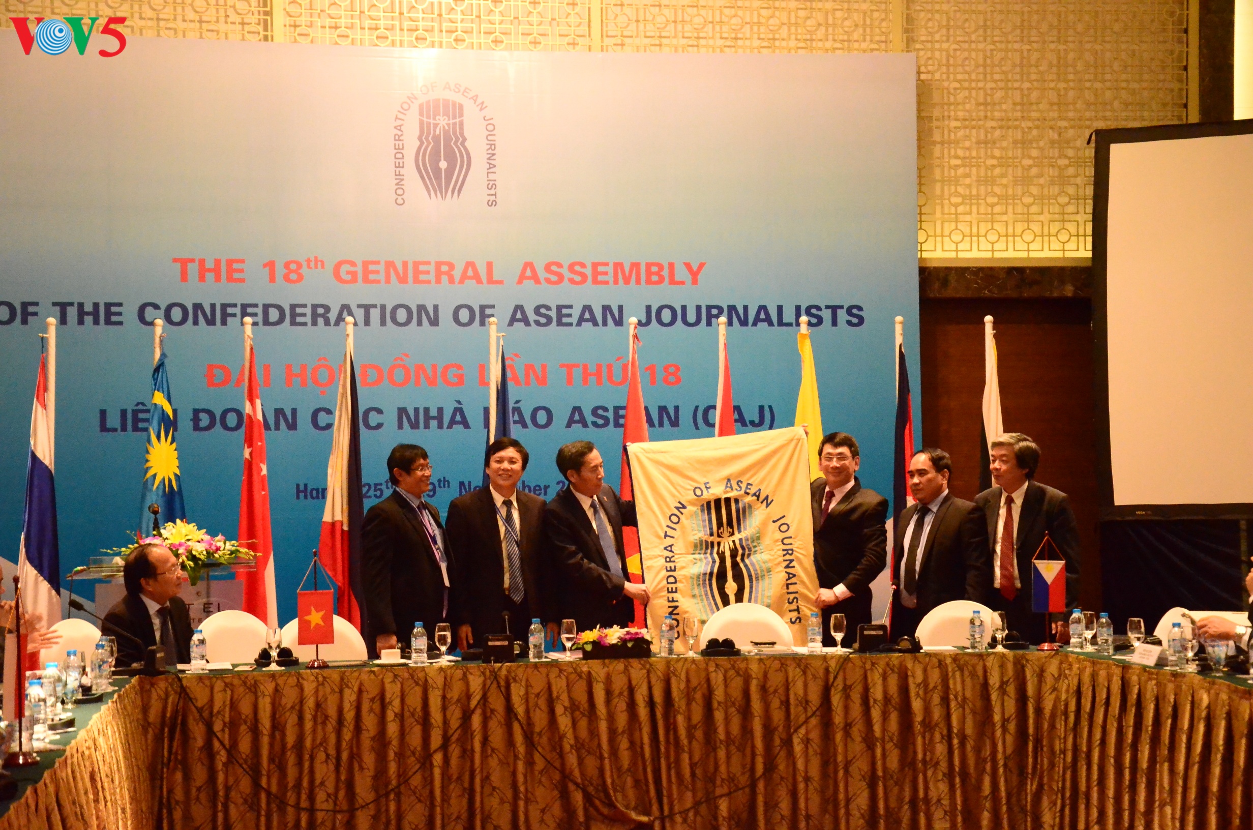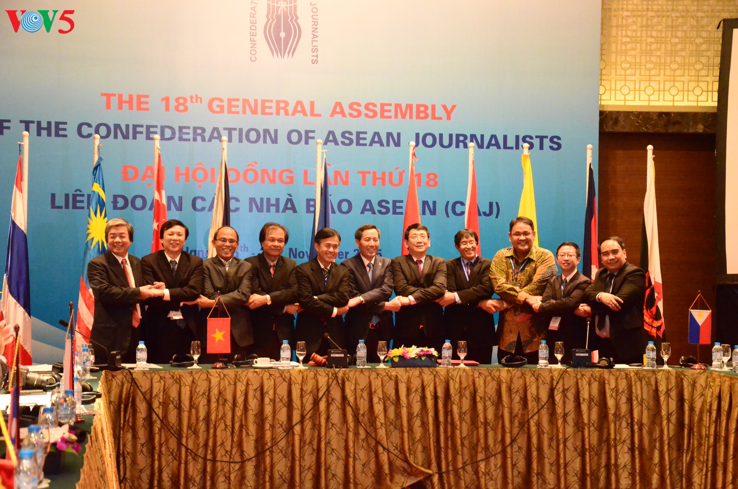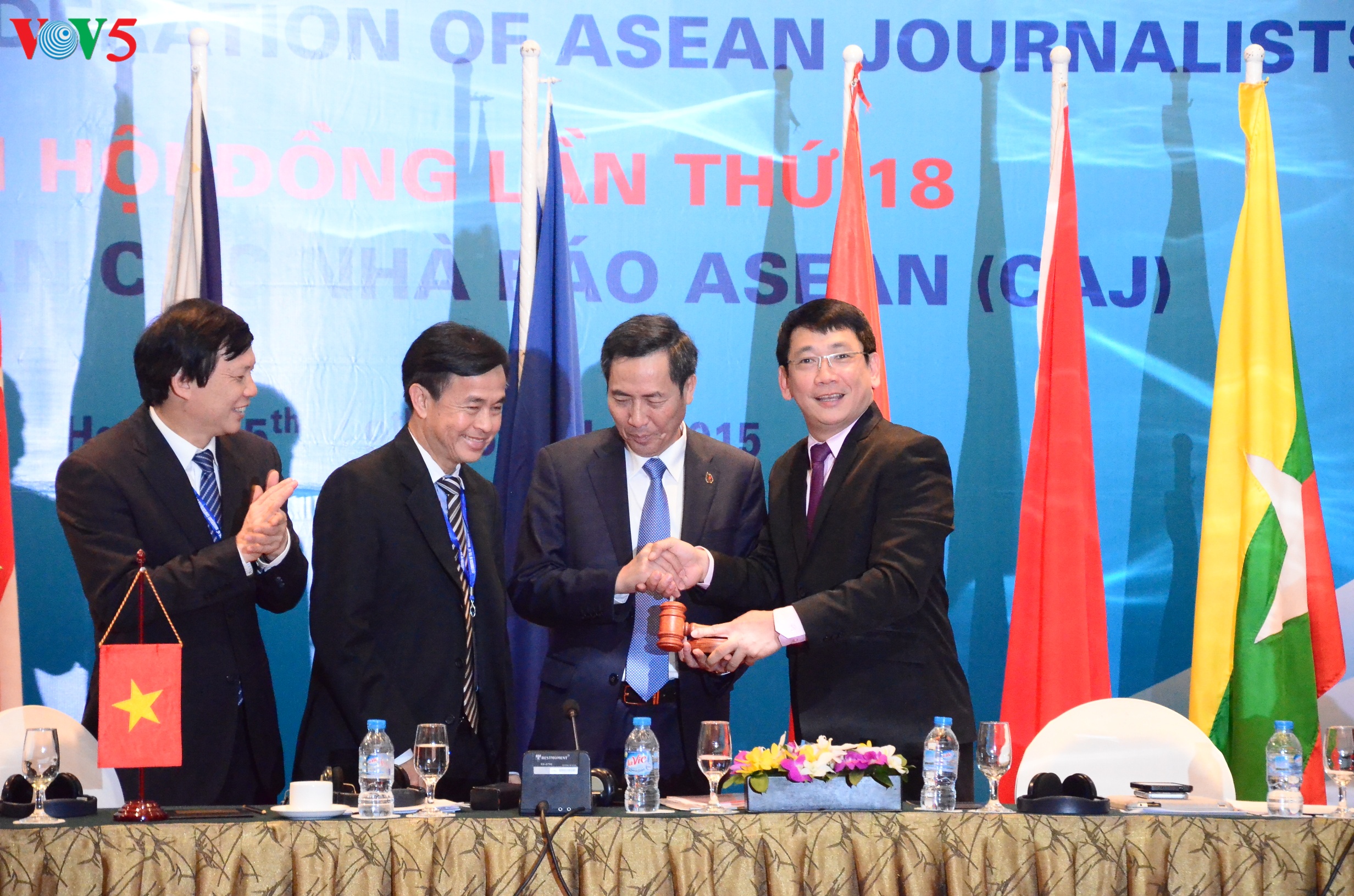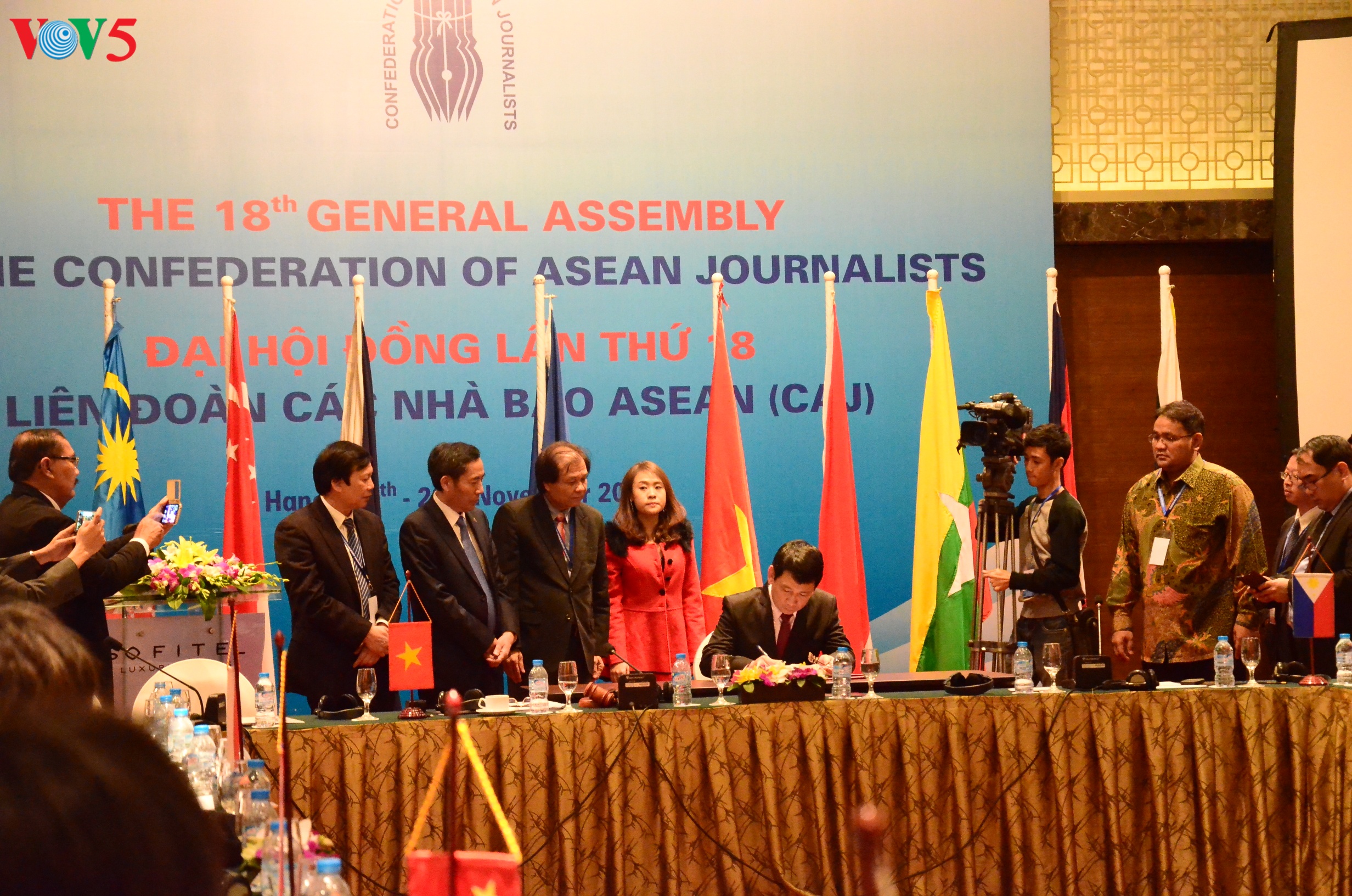 | CAJ juga mengesahkan “Program aksi masa bakti 2015-2017” yang direkomendasikan oleh Persatuan Wartawan Vietnam dan menandatangani Pernyataan Hanoi |