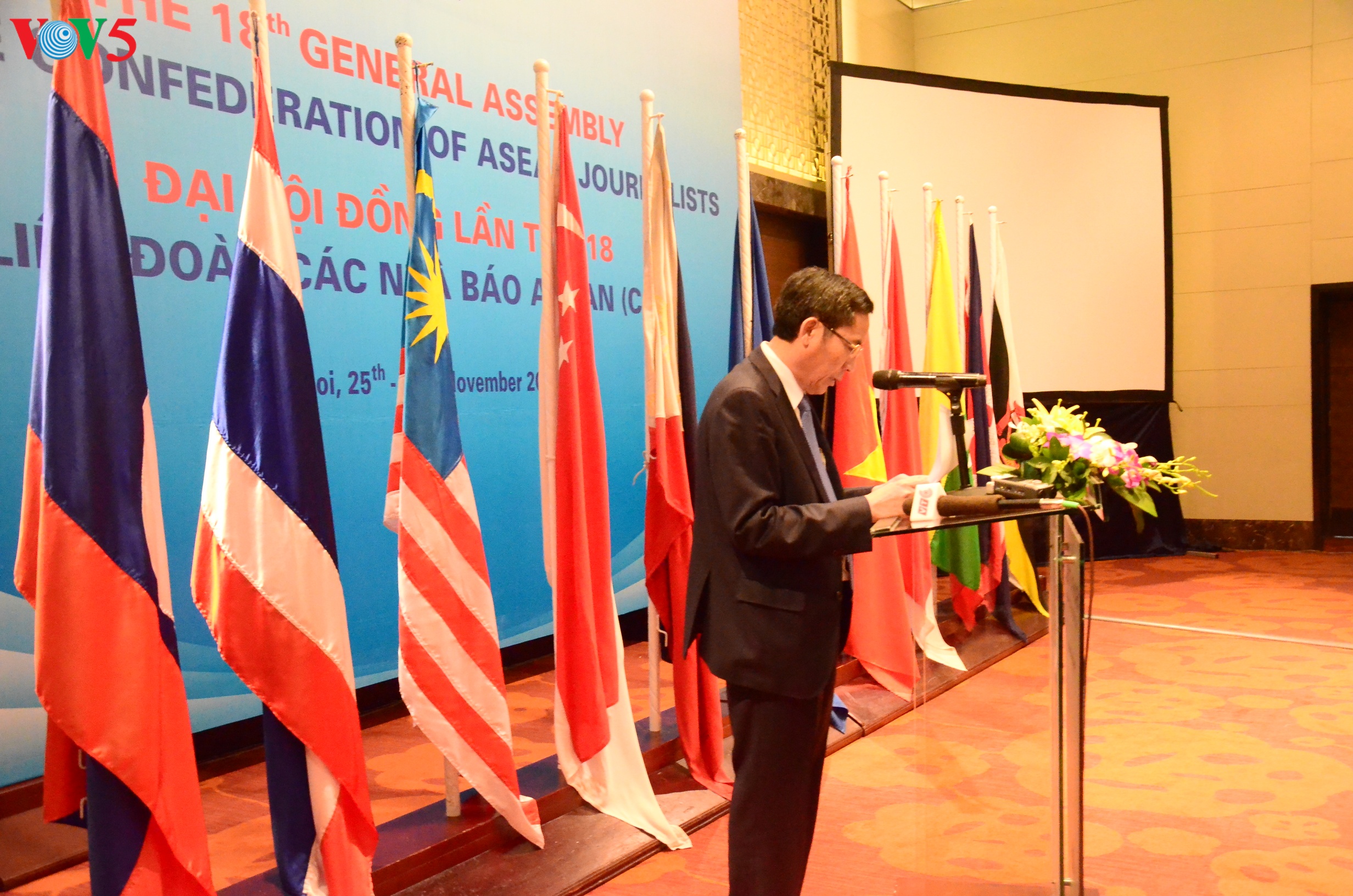 | Sidang ke-18 Majelis Umum CAJ telah mengeluarkan Pernyataan Hanoi . |