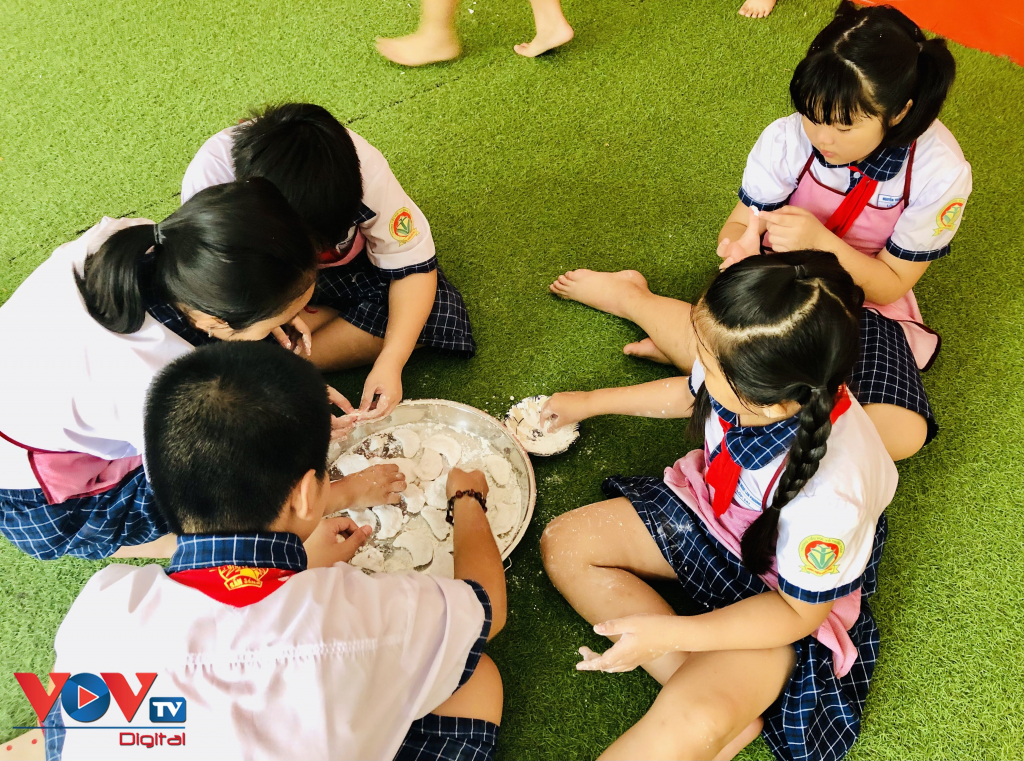 Aktivitas pengalaman membuat kue rakyat daerah Nam Bo diterapkan dari kelas 3 sampai kelas 5. Setiap kelas diajarkan membuat kue yang berbeda, dari yang sederhana hingga yang kompleks. Setiap jam pelajaran tersebut memberi rasa bahagia dan nyaman bagi guru dan pelajar. Doan Thi Thu Thuy, guru Sekolah Dasar Vo Truong Toan, mengatakan: