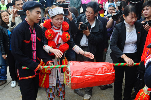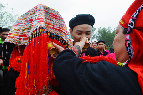 (VOVworld) - Pengantin perempuan etnis minoritas Dao menunggu keluarga pengantin laki- laki untuk menjalankan ritual. Ini merupakan upacara pernikahan rakyat etnis minoritas Dao Merah dalam pesta musim semi di Kampung Budaya etnis- etnis Vietnam di Dong Mo- kota Hanoi.