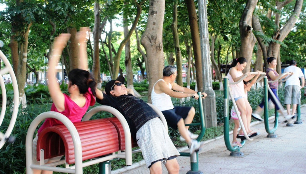 Akhir-akhir ini, di banyak kota di Vietnam telah dipasang banyak pekakas olahraga di udara luar. Perkakas olahraga ini demi kebutuhan warga secara gratis dan warga langsung merawat dan menggunakan-nya. Sebagian besar warga merasa gembira berlatih olahraga dengan perkakas tersebut. Menurut catatan, di setiap tempat seperti di atas, ada kira-kira 20 buah perkakas olahraga yang dipasang secara kokoh dan aman bagi pemakainya. Alat-alat yang sederhana dan mudah digunakan telah memenuhi kebutuhan semua orang , misal-nya melatih punggung, perut, naik sepeda, main bar horisontal dan lain- lain….
