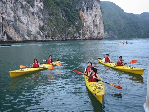 Memilih kayak untuk menemukan teluk, sungai dan anak sungai akan mendatangkan pengalaman yang baru dan jarang ada. Dengan keunggulan yalah kecil, ringan, kayak bisa masuk ke selat-selat dan gua-gua kecil, membaw awisatawan menuju dekat kaki gunung batu, desa-desa tenteram di tepian sungai, memandangi gua-gua yang fantastis dari alam. Harga sewa kayak rata-rata sebanyak 100.000-200.000 dong Vietnam per jam. Saudara Nguyen Van Quynh, petugas Kelub Kayak Bech Club, Flamingo di danau Dai lai Resor memberitahukan: “Mata olahraga mengayuh kayak merupakan mata olahraga yang paling banyak digunakan wisatawan dalam paket wisata. Ketika berwisata dengan kayak, wisatawan bisa berbaur pada alam, mengayuh kayak dan seluruh badan bergerak. Mata olahraga kayak melatih keuletan, ketekunan dan kegagah-beranian manusia”.