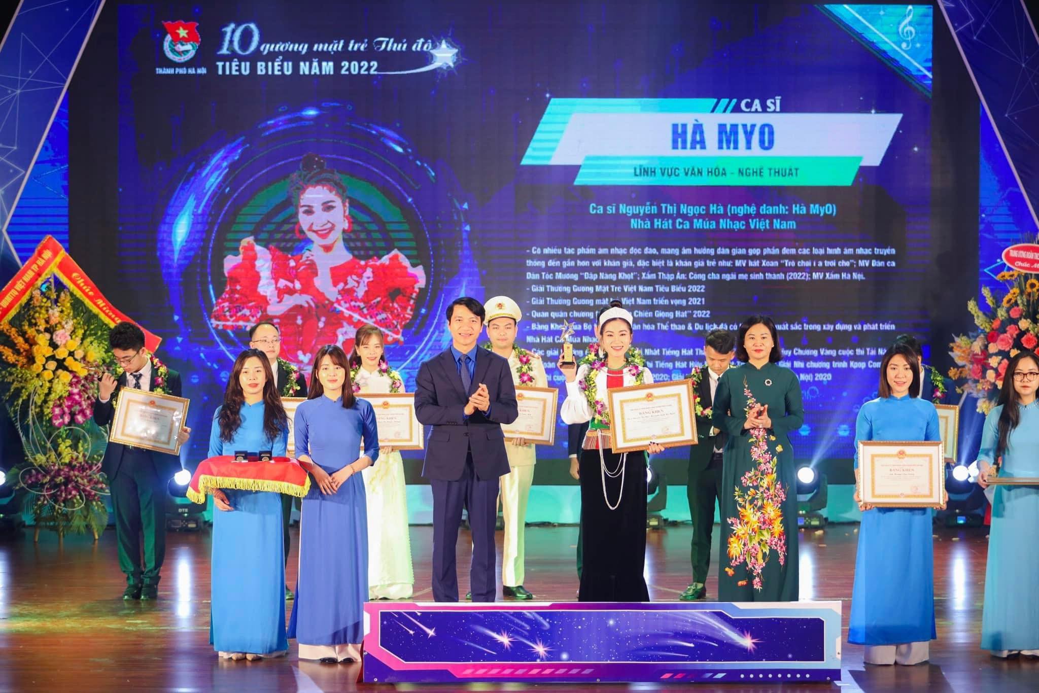 Penyanyi Ha Myo menerima penghargaan Pemuda Vietnam Tipikal 2022 (Foto: My Tra) |