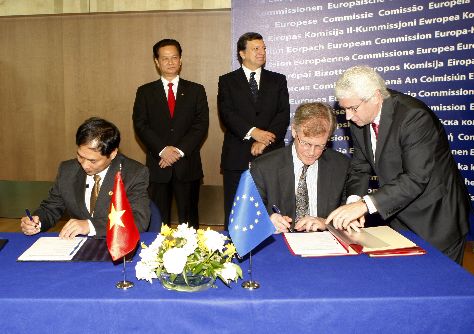 (VOVworld) – Pada 27 Juni di Brusel, Belgia, Menteri Luar Negeri (Menlu) Vietnam Pham Binh Minh dan Komisaris Tinggi urusan politik keamanan dan hubungan luar negeri Uni Eropa, Catherine Ashton resmi menanda-tangani Perjanjian Kemitraan dan Kerjasama menyeluruh Vietnam – Uni Eropa (PCA) dan mengawali proses perundingan tentang Perjanjian Perdagangan Bebas bilateral (FTA). Peristiwa ini membuka satu periode baru dalam hubungan kerjasama antara Vietnam dan Uni Eropa, merupakan prasyarat yang penting bagi Vietnam dan Uni Eropa untuk membentuk berbagai mekanisme kerjasama yang kongkrit, turut memperkuat lebih lanjut lagi hubungan kemitraan dan kerjasama bilateral pada tahun-tahun mendatang.