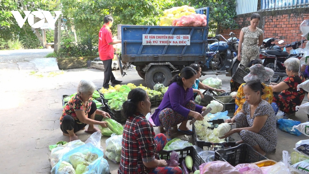 Khususnya, gerai “tanpa biaya” yang terletak di depan rumahnya di dusun Long Hoi, Kecamatan Hoa Long, Kabupaten Lai Vung merupakan tempat mengirim ratusan porsi sayur-sayuran dan ubi-ubian secara gratis setiap hari kepada warga yang mengalami kesulitan di daerah setempat. Bapak Vo Phuoc Minh, Wakil Ketua Komite Rakyat Kecamatan Hoa Long memberitahukan: