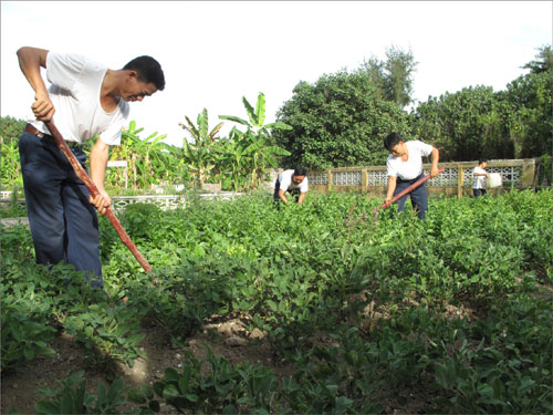 Para perajurit divisi C52 sedang berkebun di pulau.