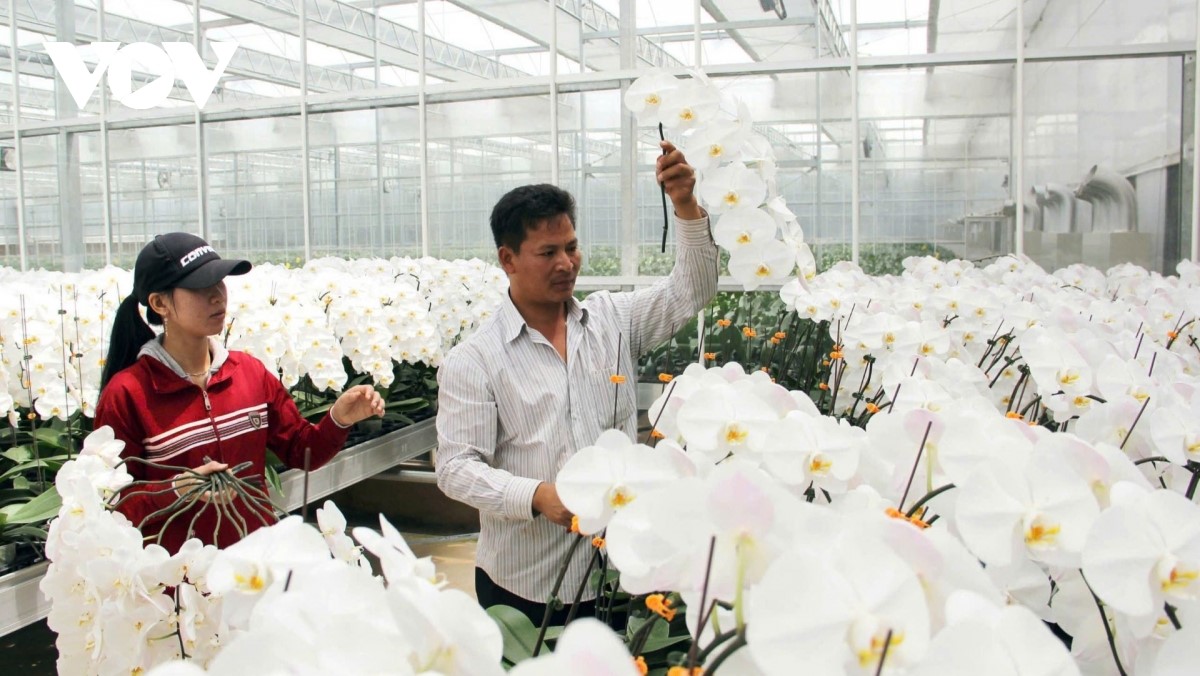 Proteksi bunga dengan teknologi tinggi diinvestasikan secara sinkron sehingga memperluas nilai rantai pertanian di daerah (Foto: Quang Sang/VOV Tay Nguyen) |