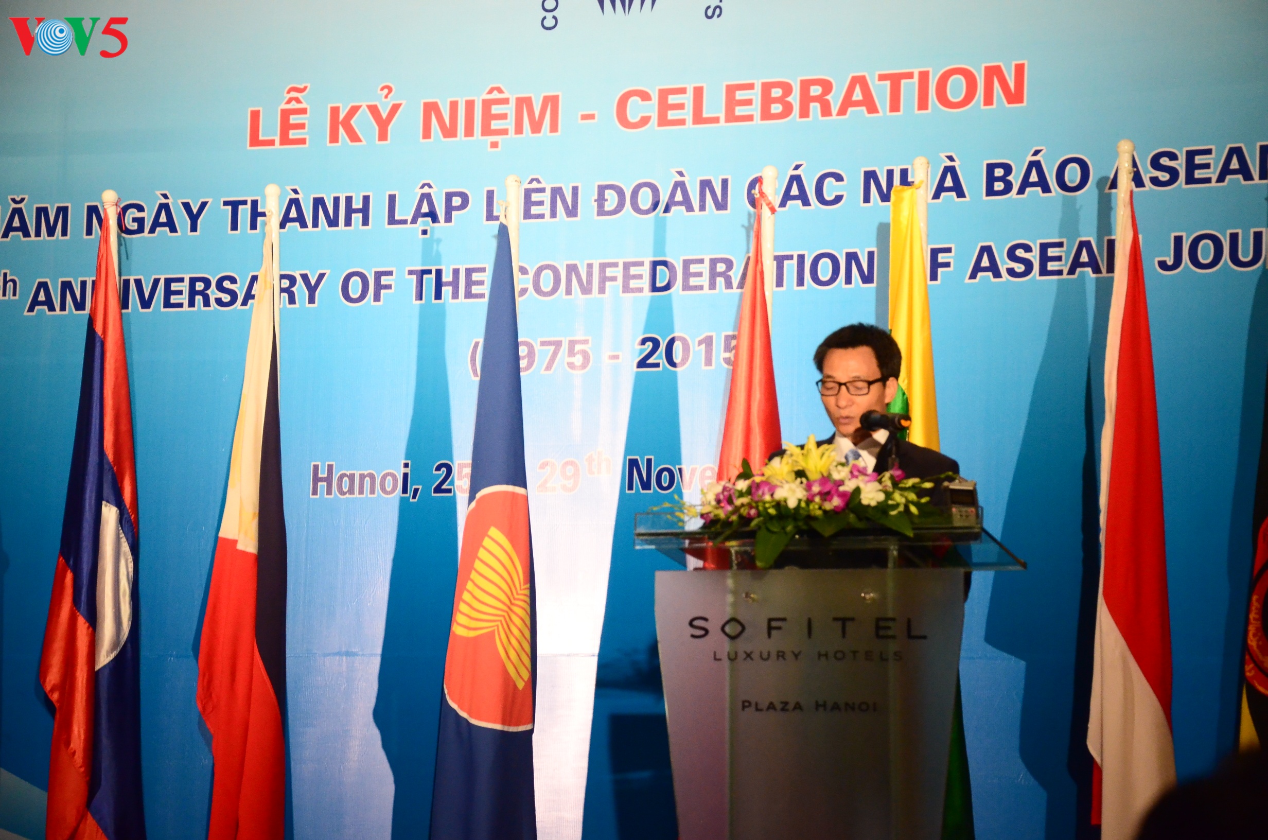 Seiring dengan terbentuk dan berkembangnya ASEAN, ialah usaha berjalan seperjalanan dari Konfederasi Wartawan ASEAN (CAJ) selama masa 40 tahun ini. Ini merupakan satu organisasi wartawan di kawasan ASEAN yang telah melakukan aktivitas-aktivitas positif dan memberikan sumbangan kepada perkembangan bersama di kawasan. Acara peringatan ultah ke-40 berdirinya CAJ dan penyelenggaraan Sidang ke-18 Majelis Umum CAJ yang mempunyai makna istimewa berlangsung bertepatan dengan persiapan bagi Komunitas ASEAN yang resmi dibentuk pada akhir tahun 2015. Ketika berbicara di depan acara pembukaan ini, Deputi Perdana Menteri Vietnam, Vu Duc Dam menganggap bahwa semua organisasi pers, komunikasi dan para wartawan di kawasan ASEAN harus menjadi “pelopor” dengan tanggung jawab yang luhur ialah mengarahkan opini umum demi nilai-nilai baik, memberikan sumbangan kepada perkembangan dan kesejahteraan dari kawasan dan dunia. Deputi Perdana Menteri Vietnam, Vu Duc Dam mengatakan: “Pada latar belakang situasi regional dan internasional tetap mengalami perkembangan yang rumit, menempatkan tantangan terhadap perdamaian dan perkembangan, khususnya penjaminan keamanan, keselamatan, kebebasan maritim. Untuk menjaga secara mantap perdamaian, dan stabilitas, menciptakan lingkungan yang kondusif bagi perkembangan, sangat memerlukan peranan dan tanggung jawab dari pers ASEAN dalam memperkuat saling pengertian antar-bangsa, mendorong kerjasama antar-negara, dan menjunjung tinggi keadilan dalam menangani semua sengketa dan perselisihan dengan langkah damai, menaati hukum internasional. Vietnam selalu menetapkan peranan sebagai satu anggota yang aktif dan bertanggung jawab dalam semua aktivitas ASEAN, khususnya melaksanakan langkah-langkah membangun Komunitas Ekonomi ASEAN”.