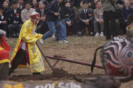 Pesta adat Membajak Sawah berlangsung pada tanggal 7 bulan pertama tahun Imlek saban tahun. Menurut buku “Sejarah Vietnam”, pada tahun 987, raja Le Dai Hanh telah tiba di kaki gunung Doi untuk melakukan pesta Membajak Sawah yang pertama kalinya dalam sejarah Vietnam, membuka satu halaman sejarah baru bagi peradaban padi sawah dan mengawali adat istiadat yang baik untuk diikuti oleh dinasti-dinasti di kemudian hari. Pada awal musim semi, raja melakukan ritual memuja untuk memohon cuaca yang baik, panenan yang baik dan membajak sawah sendiri, memulai satu masa tanam baru. Dengan sejarahnya selama ribuan tahun, pesta Membajak Sawah telah menjadi satu adat istiadat yang baik dan dilaksanakan secara hormat dan megah oleh dinasti-dinasti Ly, Tran, Le dan Nguyen.