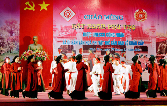 Kemudian, Pesta menyanyikan lagu rakyat Xoan di Provinsi Phu Tho merupakan pestavyang tidak bisa kurang di Vietnam Utara pada awal musim Semi. Pesta ini berlangsung dari 7-10 bulan Satu tahun imlek. Pesta menyanyikan lagu rakyat Xoan dijalankan untuk mengenangkan Xuân Nương, seorang hulubalang perempuan yang pandai, pimpinan Pahlân Hai Bà Trưng (dua Ibu Trung). Memulai Pesta menyanyikan lagu rakyat Xoan ialah jamuan musim Semi dan menyedekahi dewa Desa. Pada pesta ini, semua rombongan penyanyi sering mengadakan acara menyanyikan lagu rakyat Xoan di pintu balai desa. "Nyanyian rakyat Xoan" di Provinsi Phu Tho merupakan Pusaka budaya nonbendawi dari umat manusia. Pada pesta ini juga berlangsung pagelaran kejuruan di tepi sungai di depan balai desa, di antaranya ada banyak acara pertunjukan yang menyerap perhatian dari para penonton, misalnya menguras air, membajak, menyebarkan benih , menjual kapas dan lain- lain...