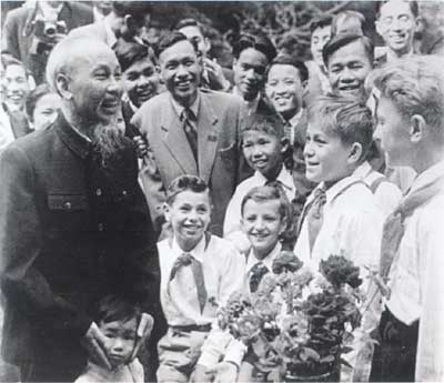 Presiden Ho Chi Minh dengan anak-anak Vietnam |