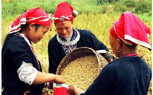 Rakyat etnis minoritas memanen padi