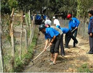 Pemuda pemudi membantu rakyat membangun pedesaan baru
