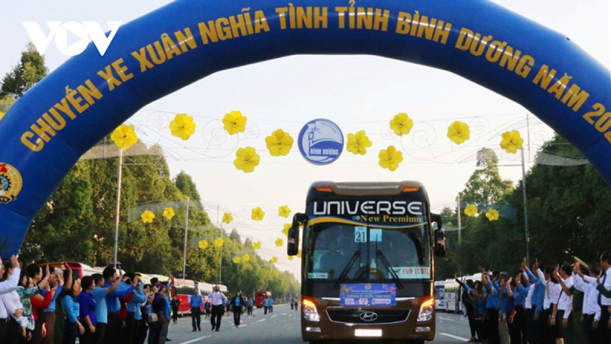 Lebih dari dua tahun terkena dampak Pandemi COVID-19, banyak pekerja di zona industri dan pabrik di Provinsi Binh Duong tidak dapat kembali ke kampung halamannya untuk merayakan hari raya Tet bersama keluarga mereka. Tahun ini, ketika semua aktivitas kembali normal, banyak pekerja memutuskan untuk membawa keluarga mereka kembali ke kampung halaman untuk merayakan Tet. Untuk memenuhi kebutuhan pekerja, banyak badan usaha menyediakan mobil untuk membawa para pekerja dan keluarganya kembali ke kampung halaman dan menjemput mereka kembali bekerja ketika liburan Tet selesai. Bersamaan dengan itu, Konfederasi Pekerja Provinsi Binh Duong juga memberikan lima ribu tiket kereta pulang pergi bagi para pekerja untuk kembali ke kampung halaman di Vietnam Tengah dan Vietnam Utara, dengan perkiraan total biaya 20 miliar VND (sekitar 800.000 USD).