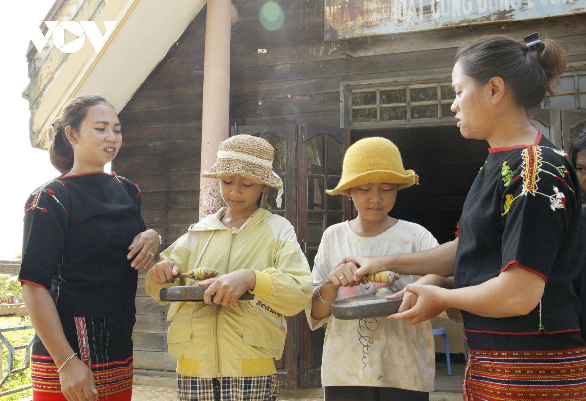 Selama 2 bulan, anak-anak belajar 3 pelajaran dasar untuk menabuh bonang, yaitu: Menyambut tamu, Menyambut padi baru, Menucapkan selamat kesehatan, selain itu juga ada 2 tarian yaitu Merayakan musim panen dan Memuja padi baru. Ini adalah bonang dan tarian tradisional warga etnis minoritas Ede Bih di Krong Ana yang hanya diwariskan kepada perempuan dan anak perempuan saja. Saudari H Lam Hmok, penanggung jawab kelas menabuh bonang, mengatakan: