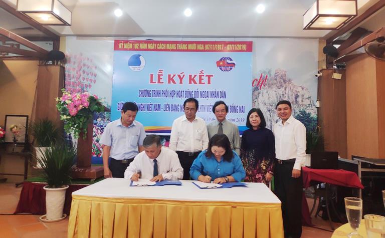 Federasi Pemuda Vietnam Provinsi Dong Nai dan Asosiasi Persahabatan Vietnam-Federasi Rusia mengadakan acara penandatanganan program koordinasi hubungan luar negeri rakyat pada 11/2019 (Foto: doanthanhnien.vn) |