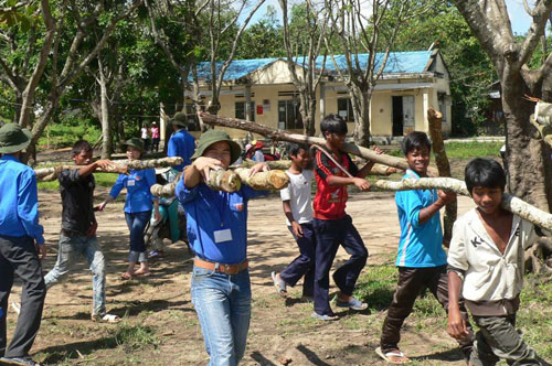 Pemuda relawan provinsi Lam Dong membantu rakyat membangun rumah