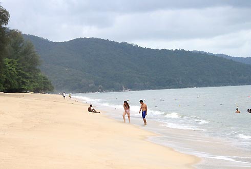 Di pulau Penang ini, ada banyak lapangan pantai indah seperti Tanjung Bunga, Batu Ferringhi dan Teluk Bahang. Diantaranya yang paling menonjol ialah lapangan pantai Batu Ferringhi. Lapangan pantai ini terletak kira-kira 20 menit kalau naik mobil dari pusat kota George Town. Di atas jalan yang menuju ke Batu Ferringhi, ada ruas-ruas tanjakan, berliku-liku dan luar biasa indahnya, di sebelah sini gunung dan di sebelah sana laut. Saudara San Noburi, wisatawan Thailand yang baru saja pulang dari kunjungannya di pulau Penang memberitahukan: “Ini untuk kedua kalinya saya datang ke pulau Penang. Kali pertama, saya bersama-sama dengan sahabat telah datang ke sini. Sedangkan kali ini, saya memilih Penang dalam kunjungan bulan madu bersama istri. Lapangan pantai cukup liar. Air lautnya yang bersih dan biru dan ada lapangan-lapangan batu di dekat jalan”.