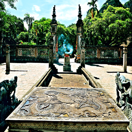 Pasangan Benda Nasional “Long sang” dengan batu di kuil pemujaan Raja Dinh Tien Hoang (Foto: baoninhbinh.org.vn) |