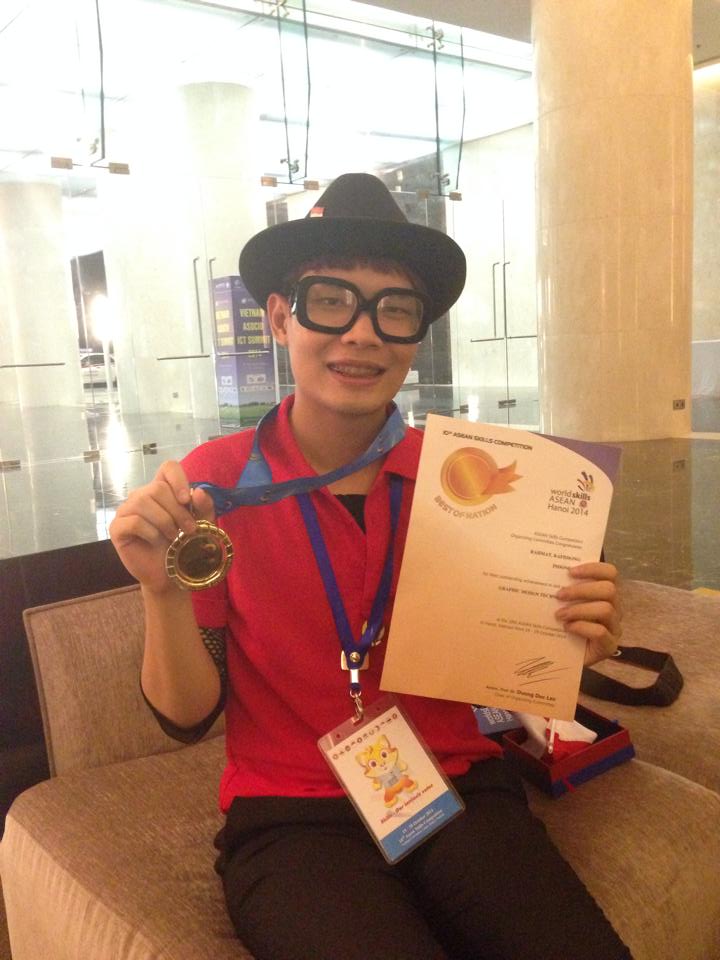(VOVworld) – Tidak sulit bagi kami untuk bertemu dengan Rafidiono Rahmat, pemuda yang berusia 24 tahun datang dari Indonesia di tengah-tengah ratusan peserta acara penutupan Kompetisi ke-10 Ketrampilan Kerja ASEAN-2014 yang baru saja diadakan di kota Hanoi. Dengan mengenakan topi cowboy, kacamatanya besar, celana capri dan sepatu yang berwarna-warni, Rafidiono Rahmat adalah salah seorang kompetitor yang merebut medali emas pada kejuruan “Grafik Desain”.