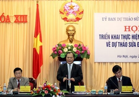 (VOVworld)- Dalam Rancangan Amandemen Undang-Undang Dasar 1992 sedang dikeluarkan untuk mengambil pendapat berbagai lapisan rakyat. Isi-isi yang mendapat perhatian banyak pemilih dalam Rancangan Amandemen Undang-Undang Dasar 1992 ialah ketentuan-ketentuan tentang ekonomi, lingkungan hidup dan kepemilikan tanah.