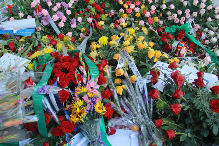 | Dan meletakkan banyak bungan di Tugu Monumen ini |