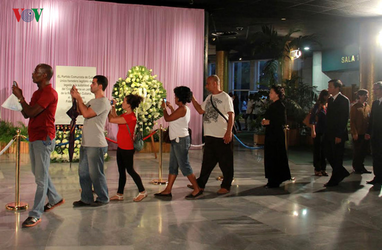| Vietnam merupakan rombongan internasional pertama yang datang ke Kuba untuk melayat almarhum. |