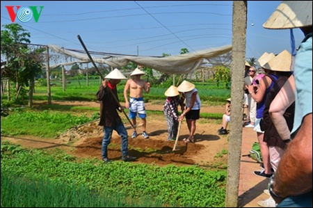 Mereka suka memotret dan mendengarkan perkenalan tentang cara menanam sayur yang khusus di daerah ini yang disampaikan oleh pemandunya. Ketika datang ke ladang keluarga saudari Le, seorang petani di desa Tra Que, para wisatawan dengan mata kepala sendiri melihat cara mencangkul tanah, menyebar ganggang, biji sayur sawi dan lain-lain. Philippe dengan antusias memegang cangkul dan mencangkul tanah di lahan yang luasnya kira-kira 3 meter persegi dengan bimbingan saudari Le. Tetesan-tetesan keringatnya mengalir di wajahnya, tapi Philip merasa antusias ketika langsung melakukan pekerjaan dari seorang petani. Dia mengatakan: “Saya sangat terkesan dengan teknik menanam sayur dengan biologi yang dilakukan kaum petani di sini, terutama ketika dapat ikut melakukan penanaman bersama dengan mereka. Semua gerak tidak mudah. Dan yang paling mengherankan ialah pupuk di sini diambil dari tumbuhan ganggang di sungai”.