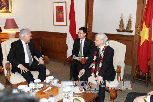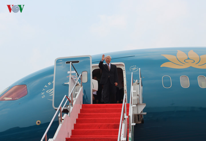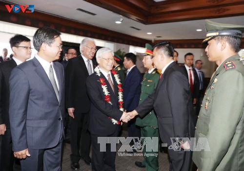| Sekjen KS PKV Nguyen Phu Trong dan delegasi tingkat tinggi Vietnam tiba di bandara internasional Soekarno Hatta, Jakarta,Pada pukul 12.10 tanggal 22/8 menurut WIB. |