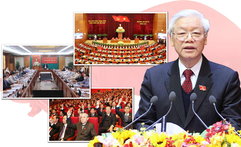 Sidang Pleno ke-4 KS PKV angkatan XIII memberlakukan Kesimpulan nomor 21-KL/TW, di antara mengaitkan pekerjaan membangun dan merektifikasi Partai dengan membangun sistem politik, menambah lagi manifestasi kemerosotan ideologi politik, moral, dan gaya hidup. Polit Biro KS PKV sepakat menambahkan isi "penyelewengan", menyempurnakan Badan Pengarahan Pusat tentang Pencegahan dan Pemberantas Korupsi menjadi Badan Pengarahan Pusat tentang Pencegahan dan Pemberantasan Korupsi dan Penyelewengan.