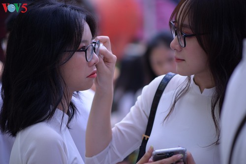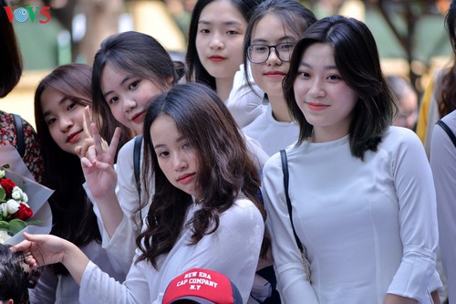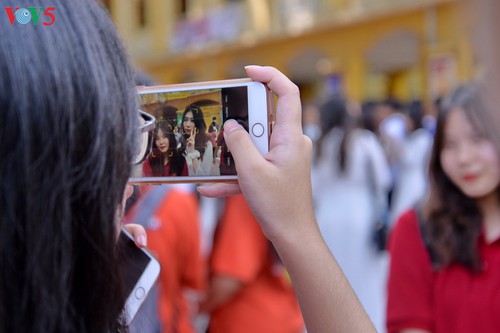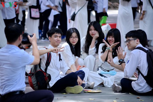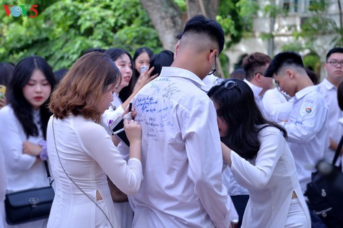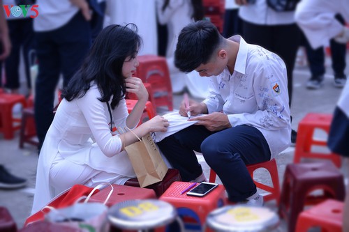 | Di halaman sekolah Viet Duc, ada sebuah poster besar yang menyimpan ribuan tanda tangan dan ucapan selamat para pelajar kelas 12 di saat meninggalkan sekolah. |