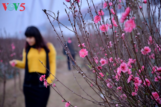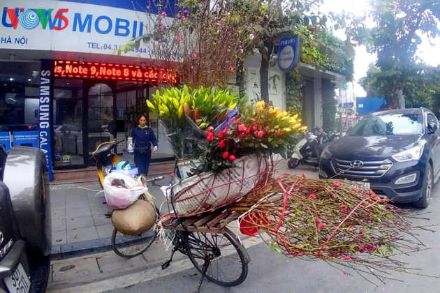 Jalan-jalan menjadi ramai, kenderaan-kendaraan dengan satu pohon bunga persik adalah citra yang mudah dilihat di Kota Ha Noi pada hari-hari menjelang Hari Raya Tet. |